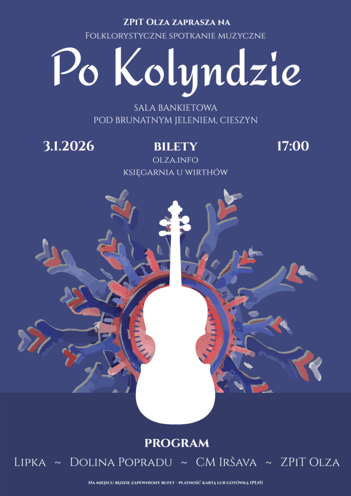 Foklorystyczne spotkanie muzyczne – Po Kolyndzie – ZPiT Olza3.1.2025 Mapa niedostępna Data 3.1.202517:00 Kategoria Impreza
