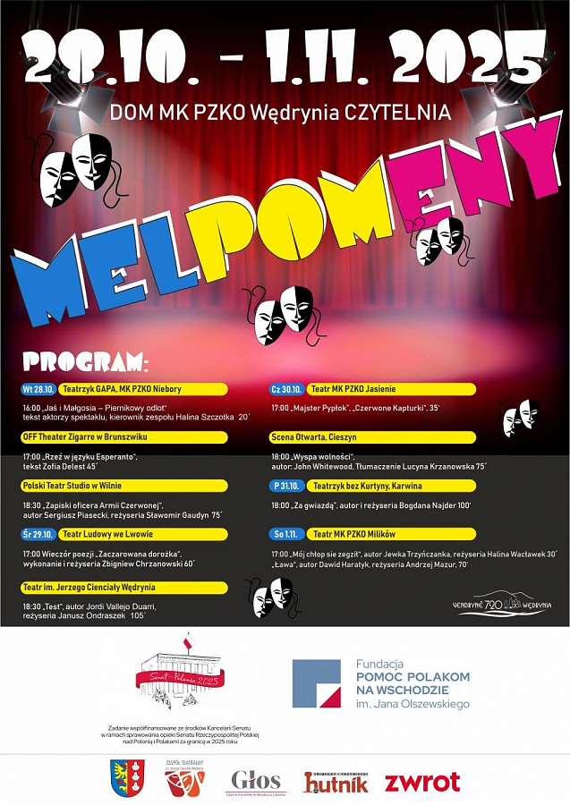 Melpomeny 202528.10.2025 Mapa niedostępna Data 28.10.2025 - 1.11.2025Celý den Kategoria Przedstawienia
