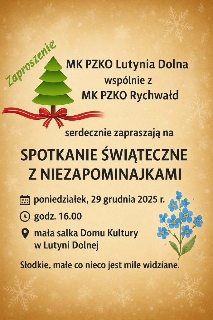 Spotkanie świąteczne z Niezapominajkami29.12.2025 Mapa niedostępna Data 29.12.202516:00 Kategoria Impreza