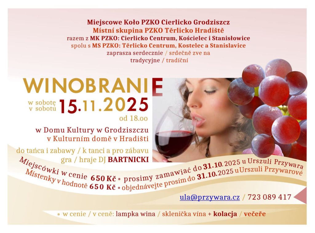 Winobranie – Dom Kultury w Cierlicku15.11.2025 Mapa niedostępna Data 15.11.202518:00 Kategoria Impreza